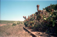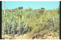 Eastern of two Coega Kops, Port Elizabeth Two clusters of Strelitzia juncea on kop. Western kop in distance, showing heavy quarring on southern flank. By railways for Port Elizabeth docks. Typical bushveld in rest of picture.