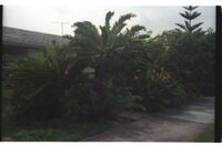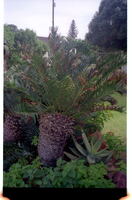 Garden at 43 Admiralty Way, Summerstrand, Port Elizabeth Encephalartos sp. with four cones, only three visible.