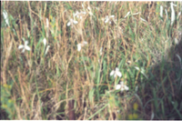 Ground beside Admiralty Way, Summerstramd, Port Elizabeth Seven flowering near-white ??? On long grass. Close shot, others scattered nearby, very windy.