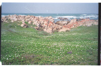 Grassy area behind coastal rocks at Noordhoek, Marine Drive, Port Elizabeth Close-up of Osteospermum fruticosum daisies showing density within a much larger patch.