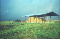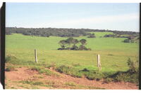 Greenshaw' farm, 8 km SE Alexandria on road to Boknes Mouth "The tree/bush 'island' in the open space is the burial site of Nongqawuse whose prophecies led to the Cattle Killing Episode of 1857/8 in Transkei. No grave visible now. Plaque states:" "Grave of Nonquase (sic)the Xosa (sic) prophettess who lived in the vicinity after the Cattle Killing Episode of 1858 until her death in 1890. Erected by CL Deacon, TB Bowker and I Mitford-Barberton, 1963".