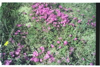 Horse camp, Amsterdam Hoek, Swartkops River, Port Elizabeth Succulent cover of Mesembryanthemum (yellow) and Ruschia rigens (pink). The bank in mid-picture is the abandoned bank of the old railway track. Swartkops escarpment in background. This horsecamp has been grossly overgrazed.