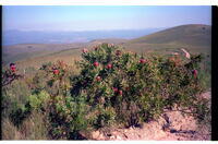 Just Below Escarpment of Gamtoos-Elands Rivers, Humansdorp / Uitenhage districts Batch of Protea neriifolia & Protea mundii occurred in a narrow belt along the mountain side at this point, not above or below.