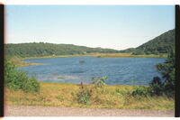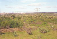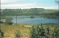 Klaas Niemand's Lake at Kraggakamma, Port Elizabeth Almost at its fullest after a good seasons rains. Taken from hillside to North-East. The water runs for some distance around the promontory at far right.