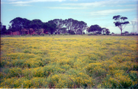 NW corner of Redhouse village, Swartkops Valley, Port Elizabeth Fine spread of Dimorphotheca cuneata, Redhouse Daisy. Swartkops Road in background. This area will probably be lost to housing in the near future