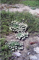Perseverence, on dry saltmarsh near ebb-and-flow of Swartkops River An exceptionally fine stool of Vingerpol in full, fine, flower, Euphorbia inerme. Surrounded by Salicornia leaves in the red phase.
