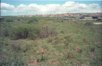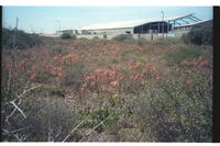 Perseverence Factory area, near Redhouse, Port Elizabeth with kwaMagxaki on hillside at back Harveya purpurea flowering well under very dry conditions. Another plant was nearby. Soon to be covered by factory growth. Note builder's hut in mid-picture.