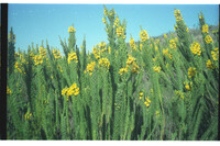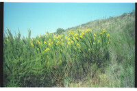 Roadside of National Road (N2) about 12 km west if Port Elizabeth central Cyclopia pubescens in damp area after good winter rains. Apparently not seen thus annually. Beneath aborted overhead road construction. Part of one of two such fields of the plant.