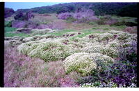 Schoenmakerskop, Port Elizabeth The dark green patches with small white scattered flowers are clumps of Agothosma apiculata, the buchu with gives rise to the Schoennies Smell.