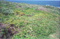 Seaview, Port Elizabeth Good spread of Senecio grandiflorus in waste space at Seaview, Port Elizabeth. Patch of flowering Kenkelbos, Tetragonia fruticosa in left bottom corner, with a yellow Asteraceae in right bottom corner. Good flowering year in a good rainy season.