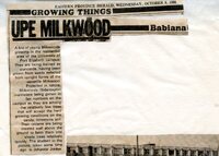 Sideroxylon inerme - Milkwood Caption "Growing things. UPE Milkwood; A line of young milkwoods residential area of the University of Port Elzabeth campus. Thhey are being trained as standards, having been grown from seeds selected from upright forms of versatile Milkwood. Protected in nature, Milkwoods, Sideroxylon inerme, are being grown in fair numbers on the campus as they are among the relatively few trees that will accept the hard growing conditions on the sandy, limestone soil. Their crowns are being created well above the ground to form them into shade trees relatively quickly. The student in the picture, taken some time ago , is Johanna Jonker. Eastern Province Herald, Wednesday, October 8, 1980."