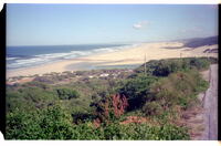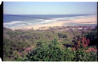 Van Staden's River mouth Now blind, from east bank. Showing where earliest waggon traffic crossed in the 18th century when unable to negatiate the steep gorges upriver. -