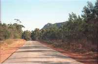 View from St. Alban's Prison gate at eastern end of the Van Stadensberg range, 38km west Port Elizabeth central. Distant view of Witteklip Mt.