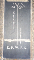 Van Staden's Wild Flower Reserve, Port Elizabeth Close-up of Cyrthanthus stadensis logo in special wild flower display hut on the reserve. EPWFS stands for Eastern Province Wild Flower Society who erected the hut in memory of Frank Reginald Long, botanist & horticulturist in Port Elizabeth.