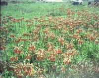Zwelitsha on outskirts of King William's Town, Ciskei "Two photos of Red Bishop nesting area in swamps. Nesting site was in the dark mass at right; small clumps of Typha & Phragmites held a few nests."