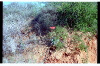 Bushman's Bridge over the N2 between PE and Grahamstown Example of survival under severe and unnatural circumstances. A Coral Aloe, Aloe striata perilously perched on the vertical slope of a donga. A few others of its kind were growing nearby in more favourable situations.