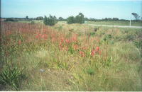 Buffelsfontein roadside, Port Elizabeth Watsonia pillansii, past their best at the end of flowering season. Part of a large field to the left. This field due to be covered by urban development.