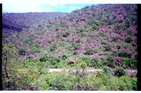 Bushy slopes of Alicedale Poort on the Bushman's River beyond the railway line Heavy stand of Spekboom throughout. Both slopes of the poort were equally as heavily in flower (Portulacaria afra).