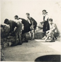 St. Marks school rockery Photograph of the St. Marks school rockery, showing five children tending the rockery.