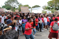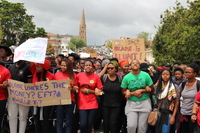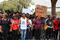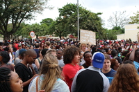 On Wednesday, 21 October 2015, Rhodes University closed in solidarity with the higher education sector as students and staff embarked on nationwide protest action against the shortage of funding in the South African higher education sector. #FeesMustFall is a national student led protest movement that began in mid-October 2015 in response to proposed increases in fees at South African universities. These images depict the peaceful march and illustrate the extent of solidarity among staff, students and community members who joined in support of the protest.