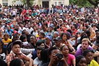 Clapham Jubilee Hall witnessing the Solidarity March 2015 On Wednesday, 21 October 2015, Rhodes University closed in solidarity with the higher education sector as students and staff embarked on nationwide protest action against the shortage of funding in the South African higher education sector. #FeesMustFall is a national student led protest movement that began in mid-October 2015 in response to proposed increases in fees at South African universities. These images depict the peaceful march and illustrate the extent of solidarity among staff, students and community members who joined in support of the protest.