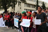 "Respect our existence or expect our resistance" On Wednesday, 21 October 2015, Rhodes University closed in solidarity with the higher education sector as students and staff embarked on nationwide protest action against the shortage of funding in the South African higher education sector. #FeesMustFall is a national student led protest movement that began in mid-October 2015 in response to proposed increases in fees at South African universities. These images depict the peaceful march and illustrate the extent of solidarity among staff, students and community members who joined in support of the protest.