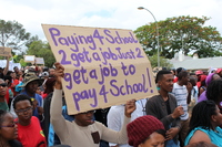 "Paying 4 school 2 get a job, just 2 get a job 2 pay 4 school" On Wednesday, 21 October 2015, Rhodes University closed in solidarity with the higher education sector as students and staff embarked on nationwide protest action against the shortage of funding in the South African higher education sector. #FeesMustFall is a national student led protest movement that began in mid-October 2015 in response to proposed increases in fees at South African universities. These images depict the peaceful march and illustrate the extent of solidarity among staff, students and community members who joined in support of the protest.