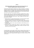 Abstract: redressing the apartheid legacy of social exclusion : social equity, redress and admission to higher education in democratic South Africa SANORD Conference, Rhodes University, December 2009