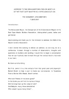 Address to the Grahamstown Region Meeting of the East Cape Master Builders Association East Cape Master Builders Association, Annual General Meetings