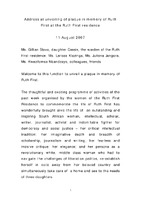 Address at the unveiling of the plaque in memory of Ruth First at the Ruth First residence, Aug 2007