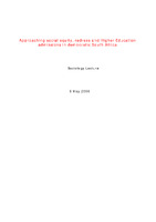 Approaching social equity, redress and Higher Education admissions in democratic South Africa Sociology Lecture, Rhodes University