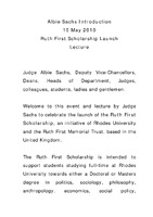 Albie Sachs Introduction Ruth First Scholarship Launch Lecture