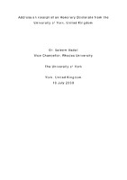 Address on receipt of an Honorary Doctorate from the University of York, United Kingdom