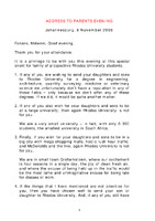 Address to Parent Evening, Johannesburg, 16 November 2006