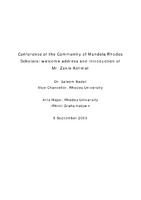 Conference of the Community of Mandela Rhodes Scholars: welcome address and introduction of Mr. Zakie Achmat Conference of the Community of Mandela Rhodes Scholars, Rhodes University, Grahamstown, September 2009 -