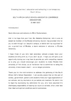 Breaking barriers: education and schooling in contemporary South Africa South African Girl's School Association Conference, May 2007, Grahamstown -