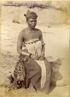Ndogeni, the Zulu who accompanied Dick King in 1842 Note on back reads: “This is a photograph of Ndogeni, the Zulu who accompanied Dick King on his famous ride in 1842. The Boers at this time laid claim to Port Natal. It was, however, because England was determined to protect the rights of her subjects that Capt. Smith and a couple of hundred men were forthwith sent to Durban. On the 25th of May (same year), the situation having become extremely critical, it was imperative to send for help and over a distance of not less than 500 miles of the wildest country. Dick King volunteered at once for this service. As Ndogeni, then 15 or 16 years of age, was his servant and knew how to ride, King selected him as his companion, other persons, for some reason or another, being unavailable. Ndogeni was not, at the outset, told the true objective of the journey, no doubt on account of his youth as well as his nationality. The two were rowed across the Bay in a boat at night by George and Joseph Cato, their two horses being swum at the stern. Ndogeni accompanied King for nearly 250 miles and over what was undoubtedly the most perilous part of the journey. He would have gone further, only, owing to an omission, he became incapacitated because obliged to ride this great distance without stirrups. He proved of considerable assistance to his master, indeed it is not too much to say that without some such help as he was able to afford, the mission might not have been quite as successful as it was. Natal was saved. It is partly because his account of the journey throws fresh lustre on King’s magnificent achievement, that Ndogeni’s narrative has been specially translated, and the accompanying photograph taken.”