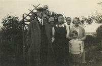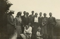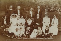 The Neuman family Photograph of the Neuman family, showing eleven adults and two children posing on the lawn. -
