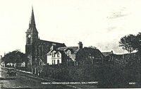 Trinity Church where the Workman family worshipped Photocopy of a photograph of Trinity Presbyterian Church in Ballymoney where the Workman family worshipped. -