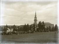 Market Square, Cradock, 2 April 1904 Glass negative : View of wagons on Market Square, Cradock, 2 April 1904, with the Dutch Reformed Church in the background.