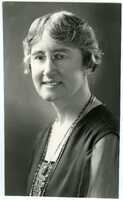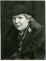 Head and shoulder portrait of an unidentified woman wearing a hat and a fur stole