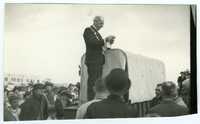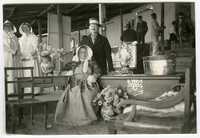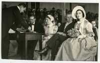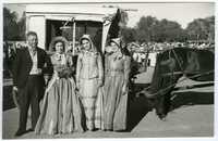 Great Trek, 1836-1840 - Centennial celebrations Glass negative : Twenty five views of unidentified individuals and crowds, some dressed in Voortrekker clothing, attending a service, and posing with ox wagons and carriages.