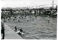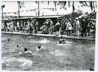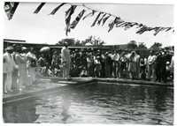 View showing the speeches, races, diving and swimming at the opening gala of the Warmbath, Cradock on 16 December 1930 Glass negative : Set of 8 negatives: Eight views showing the speeches, races, diving and swimming at the opening gala of the Warmbath, Cradock on 16 December 1930. -
