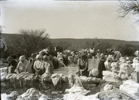 Washerwomen doing laundry at Warmbath, 1914 Glass negative : View showing African washerwomen doing laundry at Warmbath, 1914. -