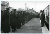Men and officers of the Midland Regiment lined up, and departing for war on 21 September 1940
