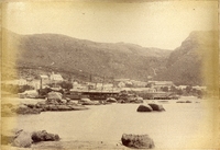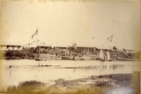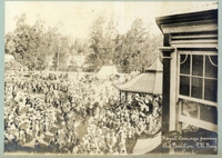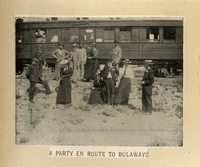 Scene at the terminus: awaiting the governor's train- The inscription partly seen on the right was "our two roads of progress: Railroads and Cecil Rhodes!" -