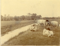 Photograph of a pastoral scene showing a few cows grazing by a small stream Photograph of a pastoral scene showing a few cows grazing by a small stream. -