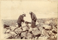 Photograph entitled "Wounded volunteer" Photograph entitled "Wounded volunteer" showing a group of men carrying a man on a stretcher