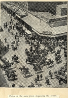 Newspaper clipping titled: "Police at the same point dispersing the crowd" Newspaper clipping titled: "Police at the same point dispersing the crowd", showing police dispersing rival detachments meeting on Tuesday morning, March 7, in the middle of Joubert Street, Johannesburg's narrowest throughfare.