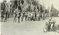 Newspaper clipping titled: Bringing in the prisoners Newspaper clipping titled "Bringing in the prisoners". The photograph is of armed men bringing in the prisoners captured after the Rand Rebellion in 1922.